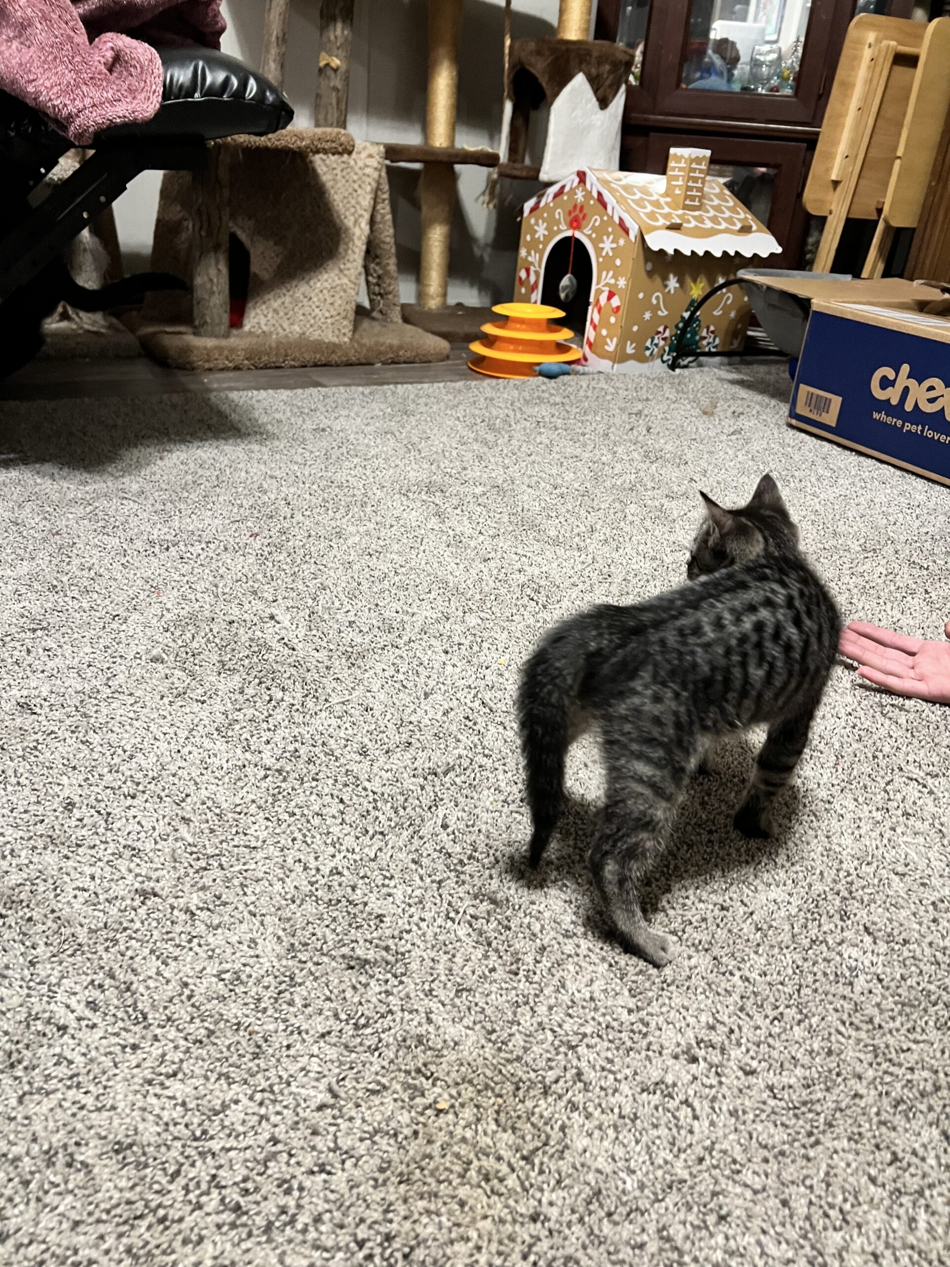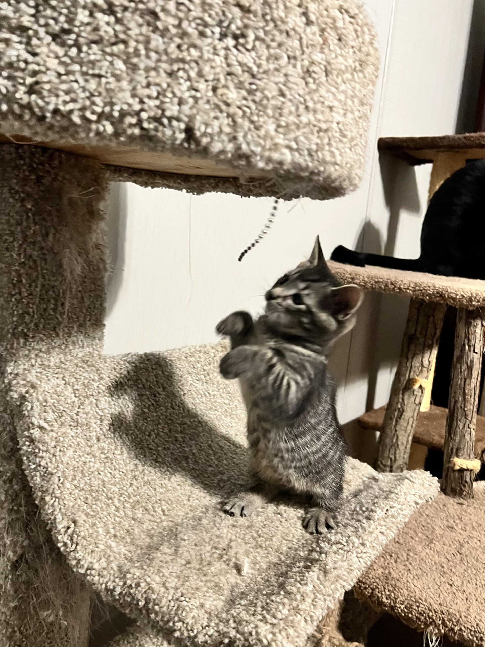 Pennie may be tiny, but don’t let her size fool you – this fearless little spitfire has big personality! She dives headfirst into playtime, loves to zoom around, and isn’t afraid to wrestle toys twice her size.