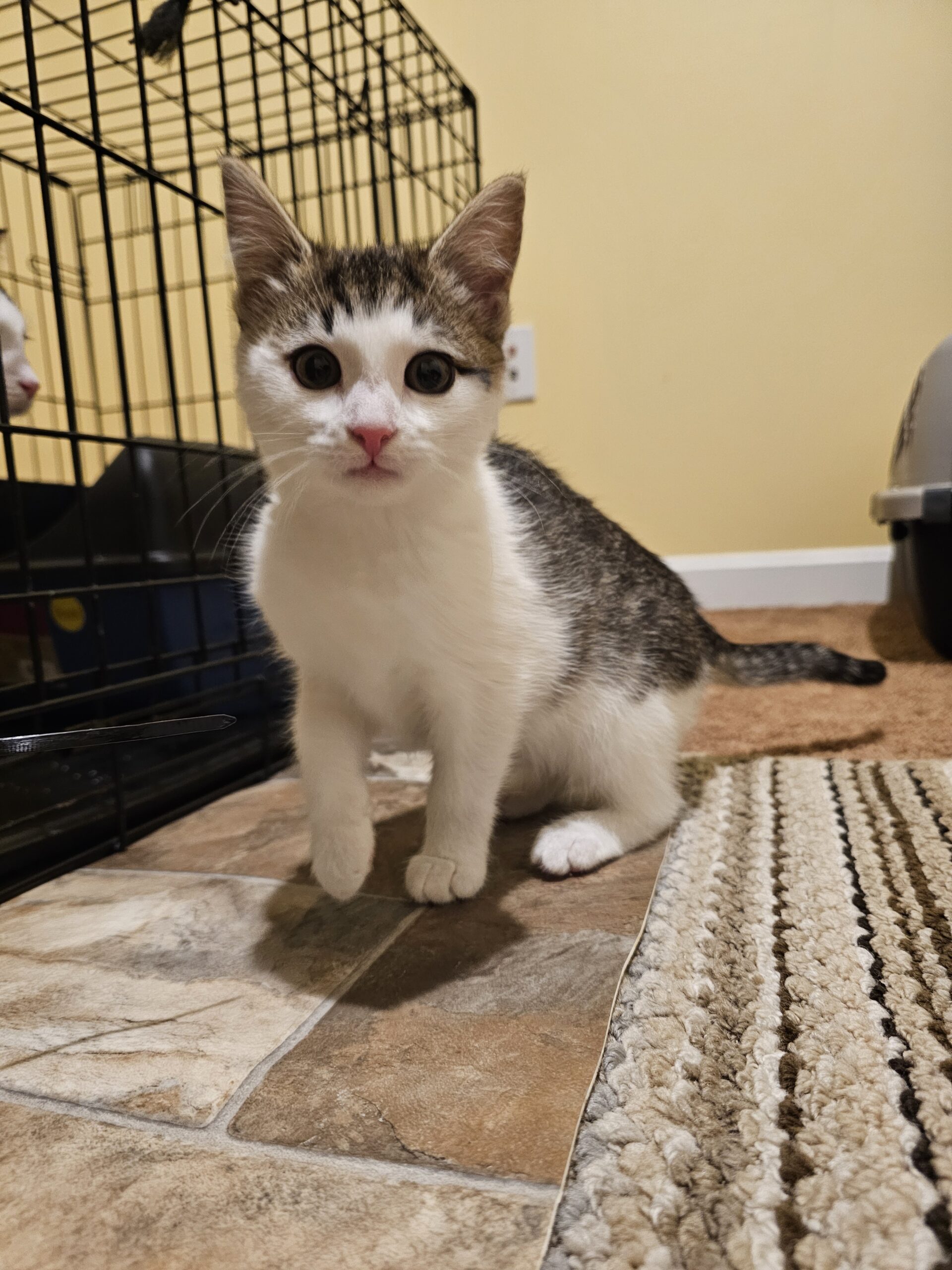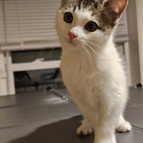 Hi! My name is Caisson (CT25-506), and I am full throttle go go go. I love to play, and I can't say much more about that. I rarely snuggle due to always needing to play. My foster mom has gone through so much newspaper to keep me entertained, but I absolutely love chasing around new paper balls. I am a bit timid with new situations and people, but once you play with me it all melts away. I am not huge on snuggling, but I am still a kitten so I may get there eventually!