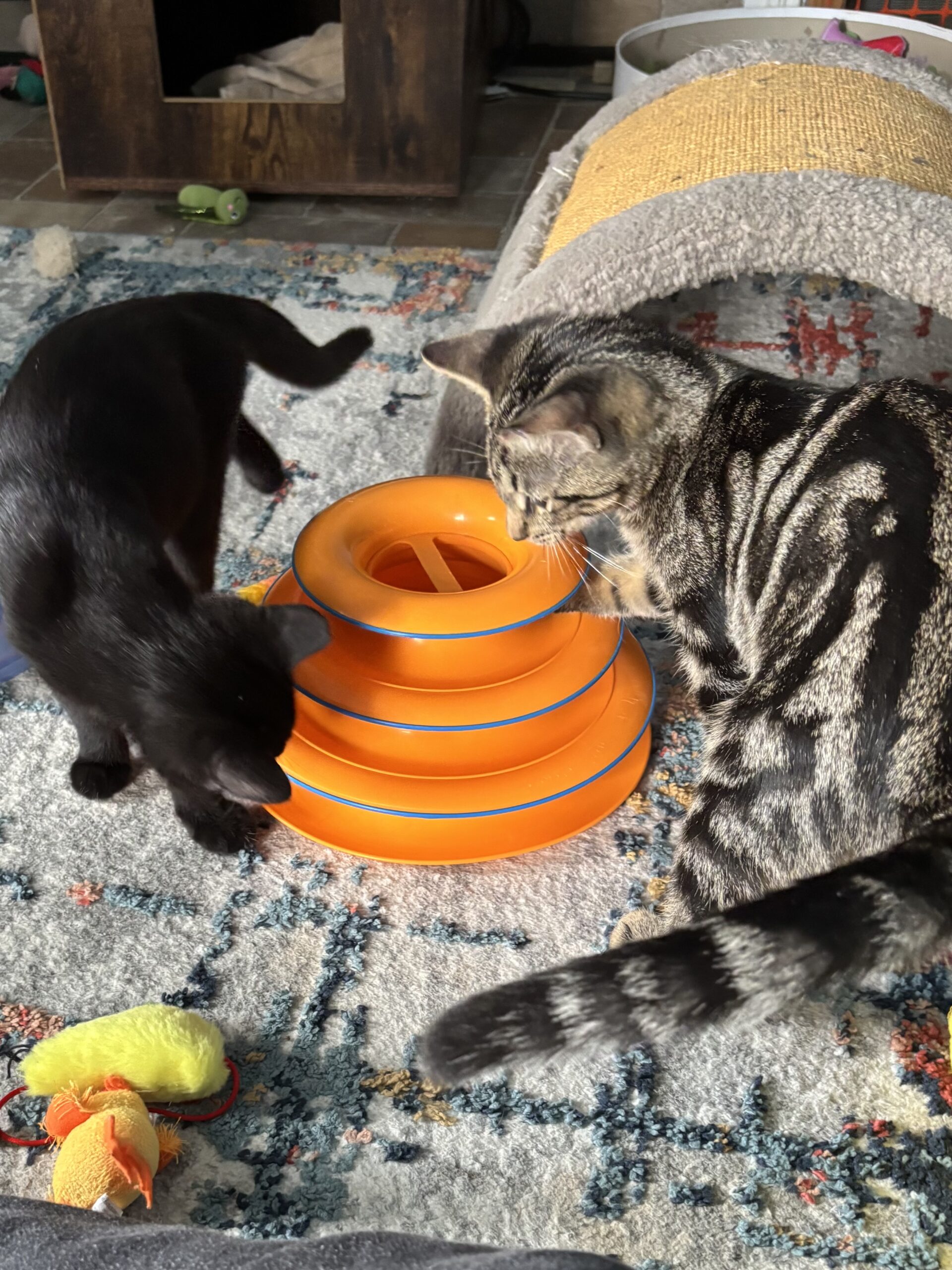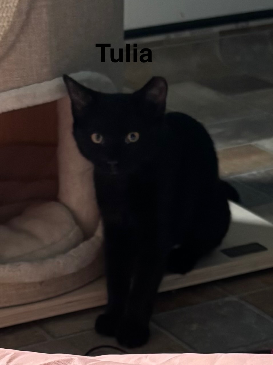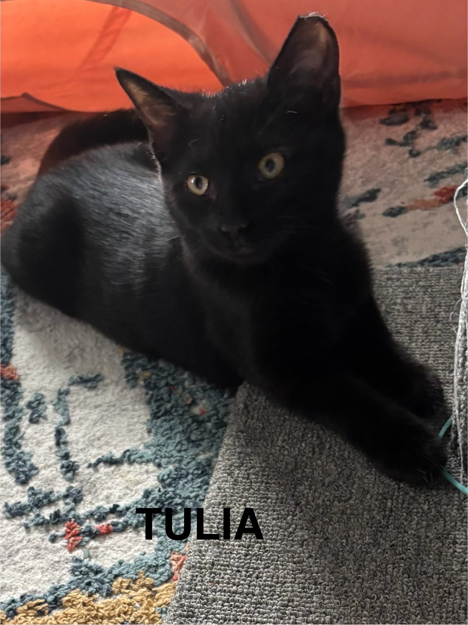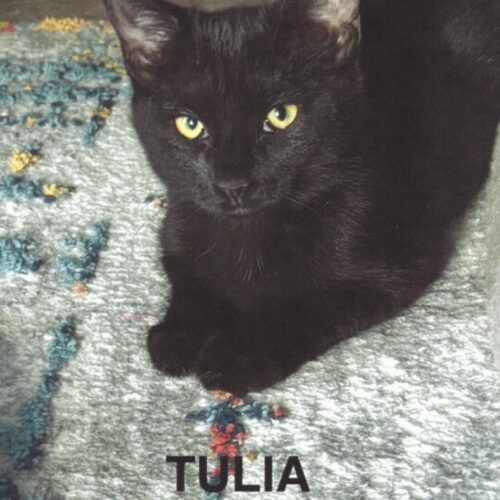 Tulia has come a long way in the 2 months she and her siblings have been in foster care, proving how docile a disposition she truly has. She loves to play with string and wand toys and anything that spins or moves. She is also a snuggler climbing onto your lap for pets in exchange for purrs. She can be picked up. Tulia, with her shiny, satiny like coat and long tail is quite the looker. If you are interested in a lovely pair, check out her brother, Cicero, a beautiful chocolate brown swirl tabby.